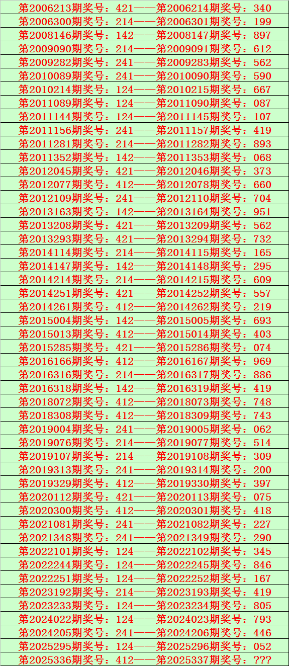 钱哥体彩罗列三第2025337期推选:类型——组六