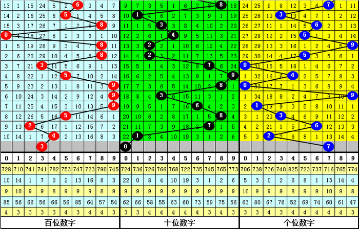 其中,百位奇偶比为4:4,大小比为4:4,本期百位一码参考3。