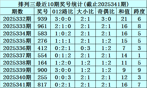 上期总结:陈设三2025341期奖号为817漳州开发区炽昌砂业有限公司,奇偶比为2:1,大小比为2:1,跨度为16。