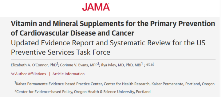 《JAMA》期刊上也发表过一项忖度,该忖度对84项涵盖近74万东谈主的忖度进行了聚合分析,概括分析维生素、矿物资补充剂对癌症、心血管疾病以及全因牺牲的细心后果。
