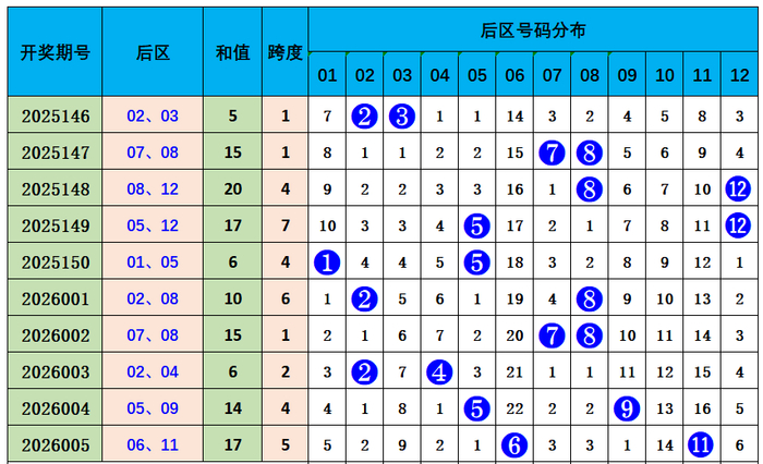 上期后区开出奖号06、11,冷热比2:0,近10期冷热比中,0:2出现5次,1:1出现4次,2:0出现1次,总体热码开出较多。玄虚分析,本期良善冷热比0:2。